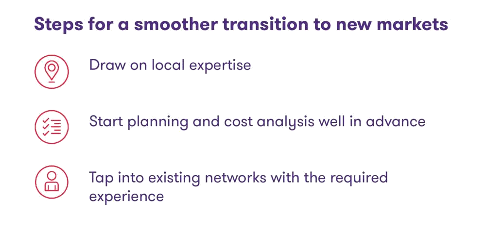 So, although moving your business to a global level can be complex, it’s clear there are steps you can take to ensure a smoother transition – not least of which is drawing on local expertise, tapping into existing networks with the required experience, and starting your planning and cost analysis well in advance.