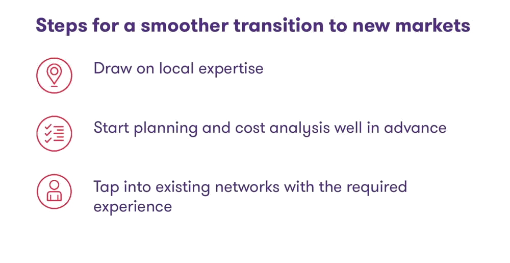 So, although moving your business to a global level can be complex, it’s clear there are steps you can take to ensure a smoother transition – not least of which is drawing on local expertise, tapping into existing networks with the required experience, and starting your planning and cost analysis well in advance.